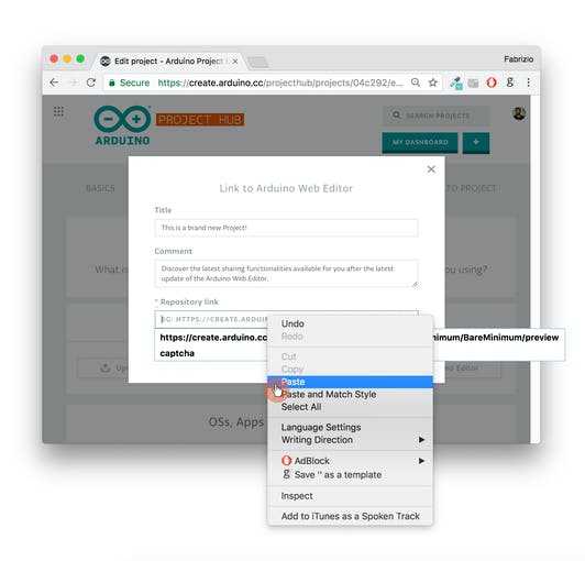 Once you are done with the Story and the previous fields go to the Software tab. In the ‘Code’ section, click on ‘Link to the Arduino Web Editor’ or ‘Link Existing Repository’.